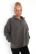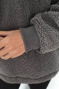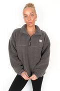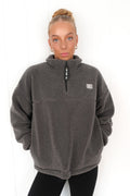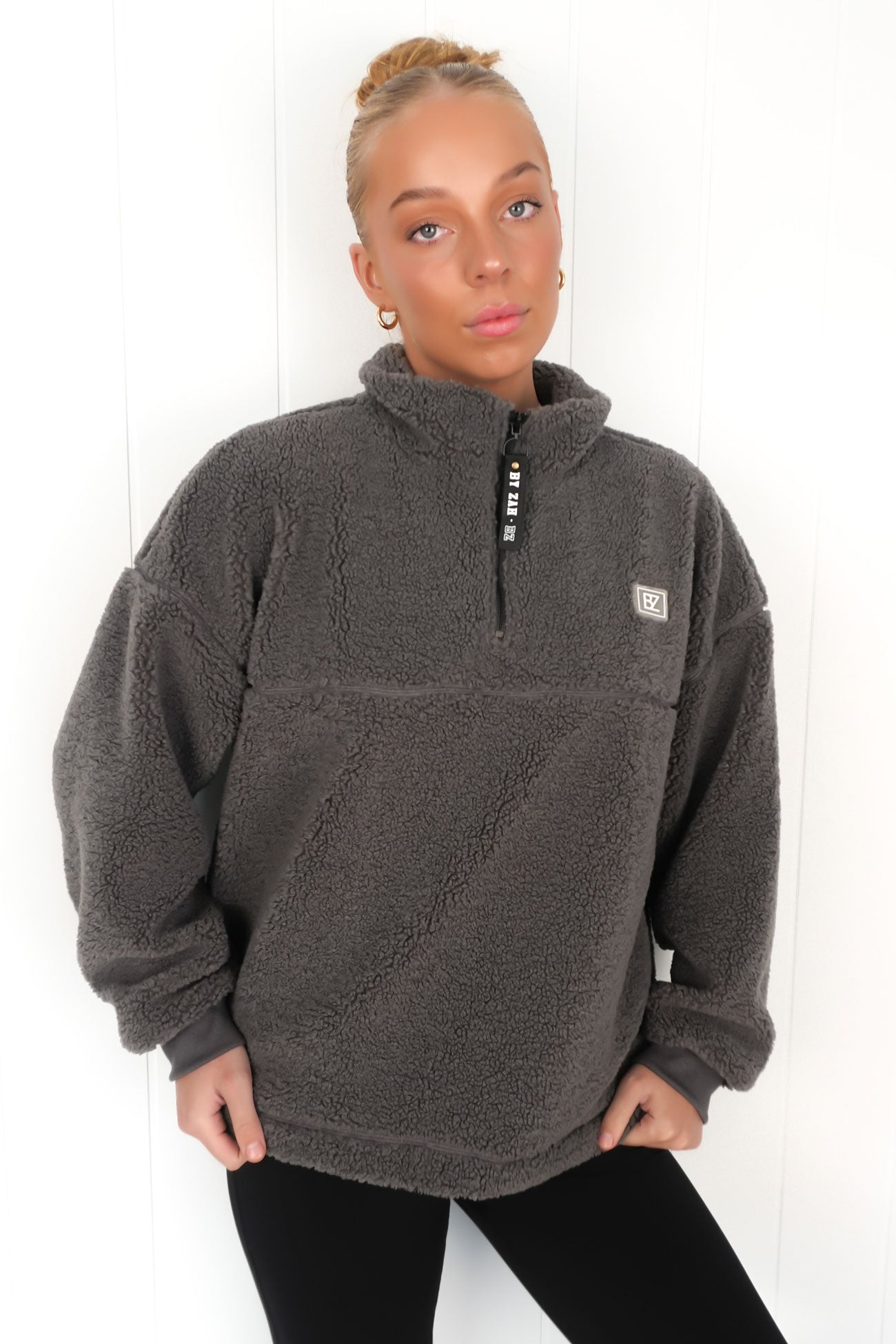 The Ace Quarter Teddy in charcoal is crafted from super soft faux sherpa, fully lined for extra warmth. Featuring a quarter zip with BZ detailing on the tag, a BZ logo on the front, and pockets to keep your hands snug. An easy throw-on essential for effortless layering and everyday comfort.