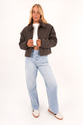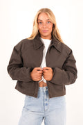 Discover the Chicago Jacket. With its oversized fit, corduroy collar, and front zip closure, this piece redefines cool. Subtle stitching detail adds a modern touch, creating a structured yet effortlessly relaxed silhouette.