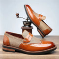 Old-school charm meets modern flair right on your feet. These loafers blend glossy wingtip leather with a textured fabric midpanel that feels fresh but still dressed-up. The rich burgundy lining and rubber sole give you comfort and grip, so you’re not just looking sharp—you’re walking easy. Ideal for dinners out, casual Fridays, or anywhere you want to clean up without going full suit.